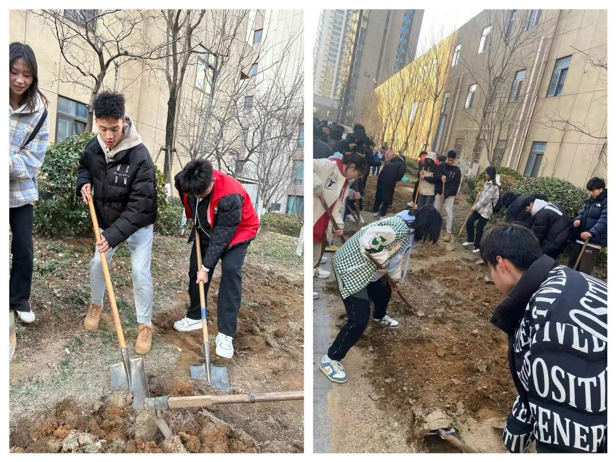 3月12日,植树节如期而至,这是一个充满生机与希望的节日。为了深入贯彻国家关于绿化增绿、美化环境的政策导向,积极响应构建生态文明、促进可持续发展的战略决策,国家足球学院国家篮球学院(以下简称“国家两院”)2023级团支部的志愿者们,在学院“星火青春”志愿服务团的引领下,到日照市东港区秦楼街道壹号学府开展植树节志愿服务。