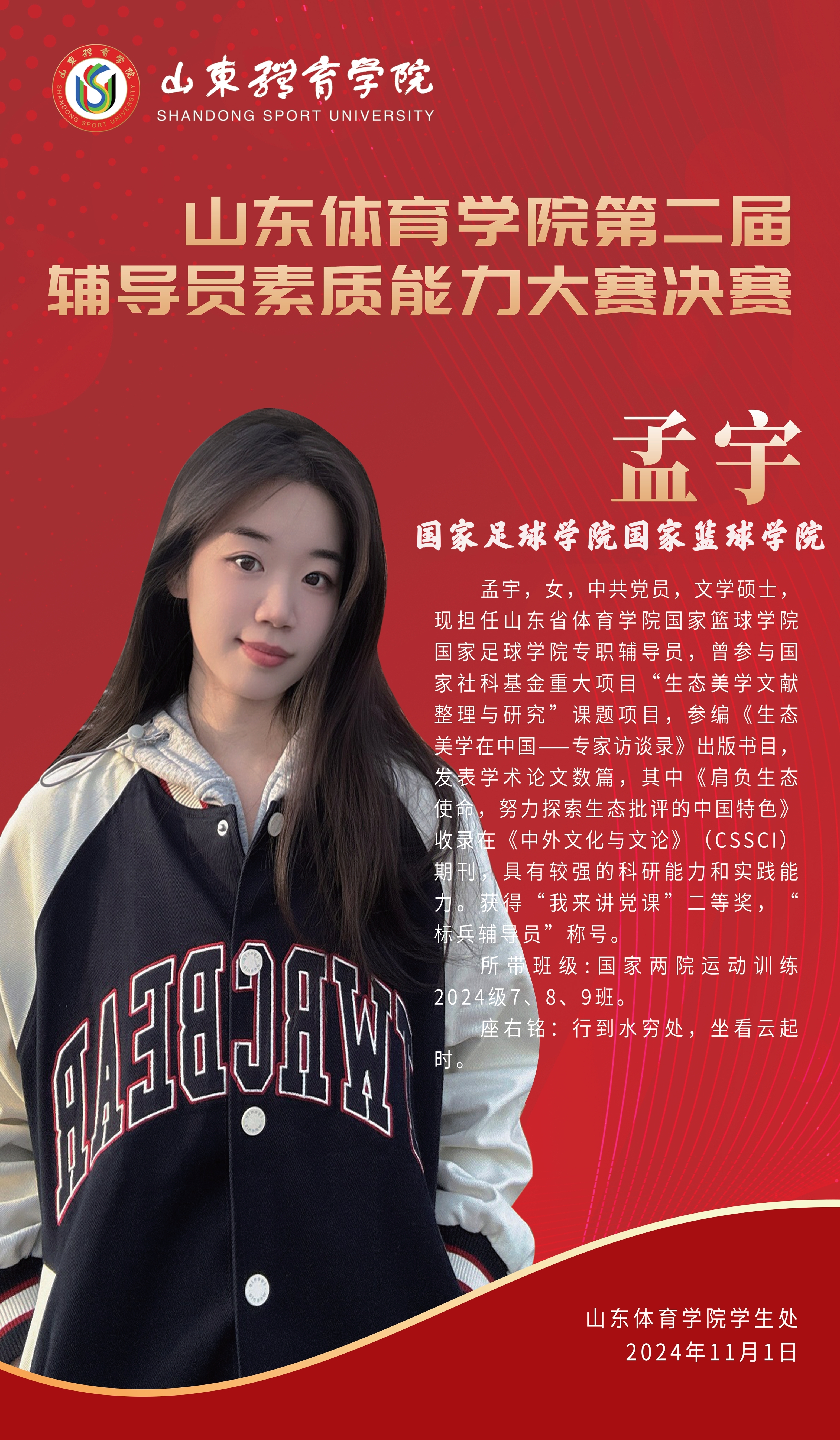 此次大赛以习近平新时代中国特色社会主义思想为指导,深入贯彻落实党的二十大和二十届二中、三中全会精神,全面贯彻落实全国教育大会、全国高校思想政治工作会议精神。国家足球学院国家篮球学院一直以来高度重视辅导员队伍建设,不断加强辅导员的培训和培养,提高辅导员的业务能力和综合素质。此次载誉而归,是对学院辅导员队伍建设的一次充分肯定,也将激励学院全体辅导员在今后的工作中不断进取,以更加饱满的热情、更加扎实的工作作风,为学生的成长成才保驾护航,为学院的发展和学校的建设做出更大的贡献。