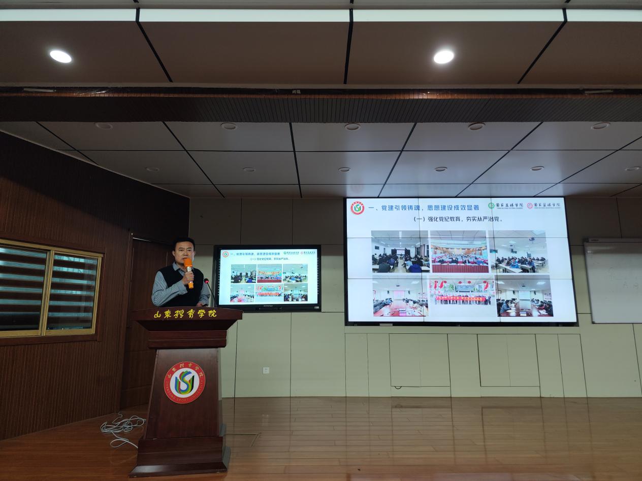 会议以“线上+线下”形式召开,济南校本部教师视频参会,国家两院党总支副书记潘冰主持会议。
