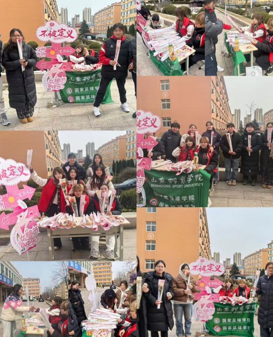 人间最美三月天,春花烂漫展新颜。在"三八"国际劳动妇女节来临之际,为弘扬时代精神,展现巾帼风采,深入贯彻对女性群体的关心关爱3月7日山东体育学院国家足球学院国家篮球学院(以下简称“国家两院”)学生会开展“春日花漾,情暖巾帼”为主题的花束赠予活动学校女性师生及工作人员送上了节日的祝福与关怀。