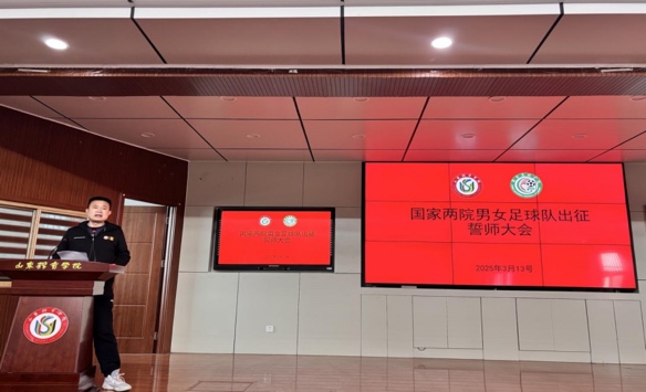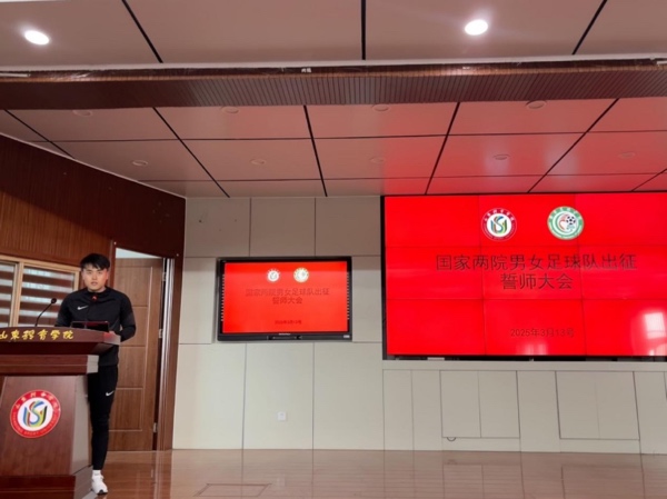 3月13日,学院师生齐聚一堂,举行了出征誓师大会。大会由国家足球学院合作培训部副主任张玲玲主持,业务部副主任、合作培训部副主任徐猛女队伍教练员栾彬、周健钦全体出征队员以及2024级足球运动专业学生共同参加活动,为即将出征的男女足健儿打气鼓劲,吹响冲锋号。