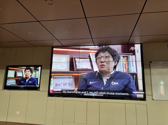 张玲玲结合自身执裁执教经验,从国际足联的三大使命“发展足球运动、影响世界、创造更美好的未来提出期望强调要正确理解足球的社会角色,爱护足球,思考足球,发挥个人和团队的最大潜能。她现场播放了精彩短片,用中国女足孙雯和国际强队的奋斗故事激励每一位队员。