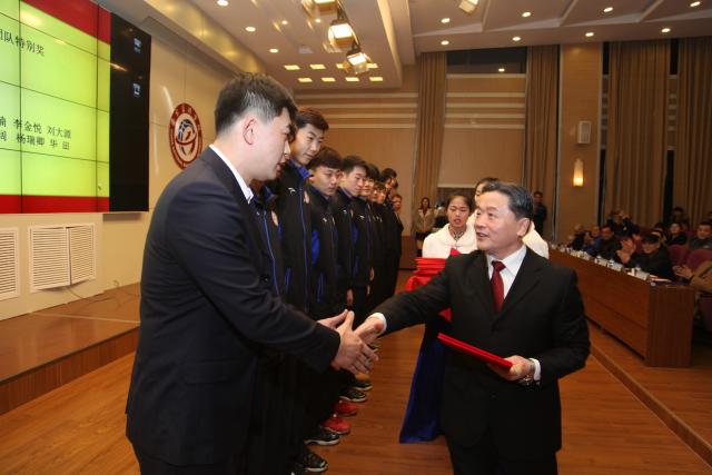 1月12日,国家足球学院、国家篮球学院(以下简称国家“两院”)揭牌一周年纪念暨2016-2017学年评优表彰大会在日照校区综合楼学术报告厅举行。山东体育学院党委书记、国家“两院”院长王毅,山东体育学院院长、国家“两院”副院长毛德伟分别发来贺信。中国篮球协会副主席、国家篮球学院首席技术顾问、全国校园篮球训练营执行总监宫鲁鸣,国家足球学院首席技术顾问米卢通过视频表示祝贺。山东体育学院党委委员、副院长、国家“两院”常务副院长、日照校区管委会主任谷忠德出席大会并致辞,会议由国家“两院”副院长、党总支书记、日照校区管委会副主任连增威主持。国家“两院”各部及校区各部门负责同志出席大会;校区培训楼报告厅作为分会场,同步视频直播盛况。