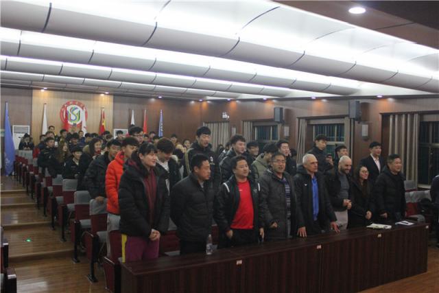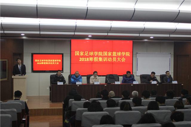 1月20日,国家足球学院、国家篮球学院(以下简称国家“两院”)在培训楼五楼报告厅召开2018年寒假集训动员大会。国家“两院”副院长、党总支书记、日照校区管委会副主任连增威出席大会并讲话,国家“两院”各部部长、副部长、教研室主任、教练团队及各代表队员参加大会。动员大会由综合部部长张凉主持。