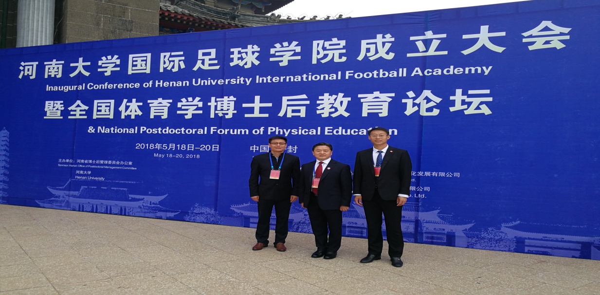 5月19日上午,山东体育学院副院长、国家足球学院常务副院长谷忠德,国家足球学院副院长连增威和综合部部长张凉等一行,受邀参加了河南大学国际足球学院成立大会暨全国体育学博士后教育论坛开幕式。活动在河南大学明伦校区举行,谷忠德副院长对河南大学国际足球学院的成立表示了诚挚的祝贺,并与参会的教育部和河南省各级领导进行了交流探讨,并表示国家足球学院将与其进行合作,为中国足球的振兴发展做出贡献。