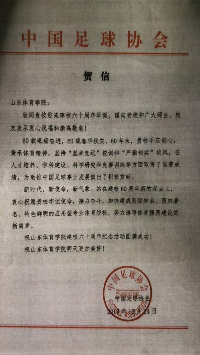 中国足球协会致电我校60年校庆