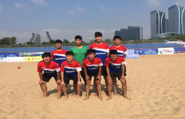7月16日,2018年中国(日照)国民休闲水上运动会——“强槐杯”沙滩足球挑战赛在万平口海洋公园南侧沙滩运动项目基地正式开赛。我院足球协会组织2016级、2017级两个学生代表队参加本次比赛。
