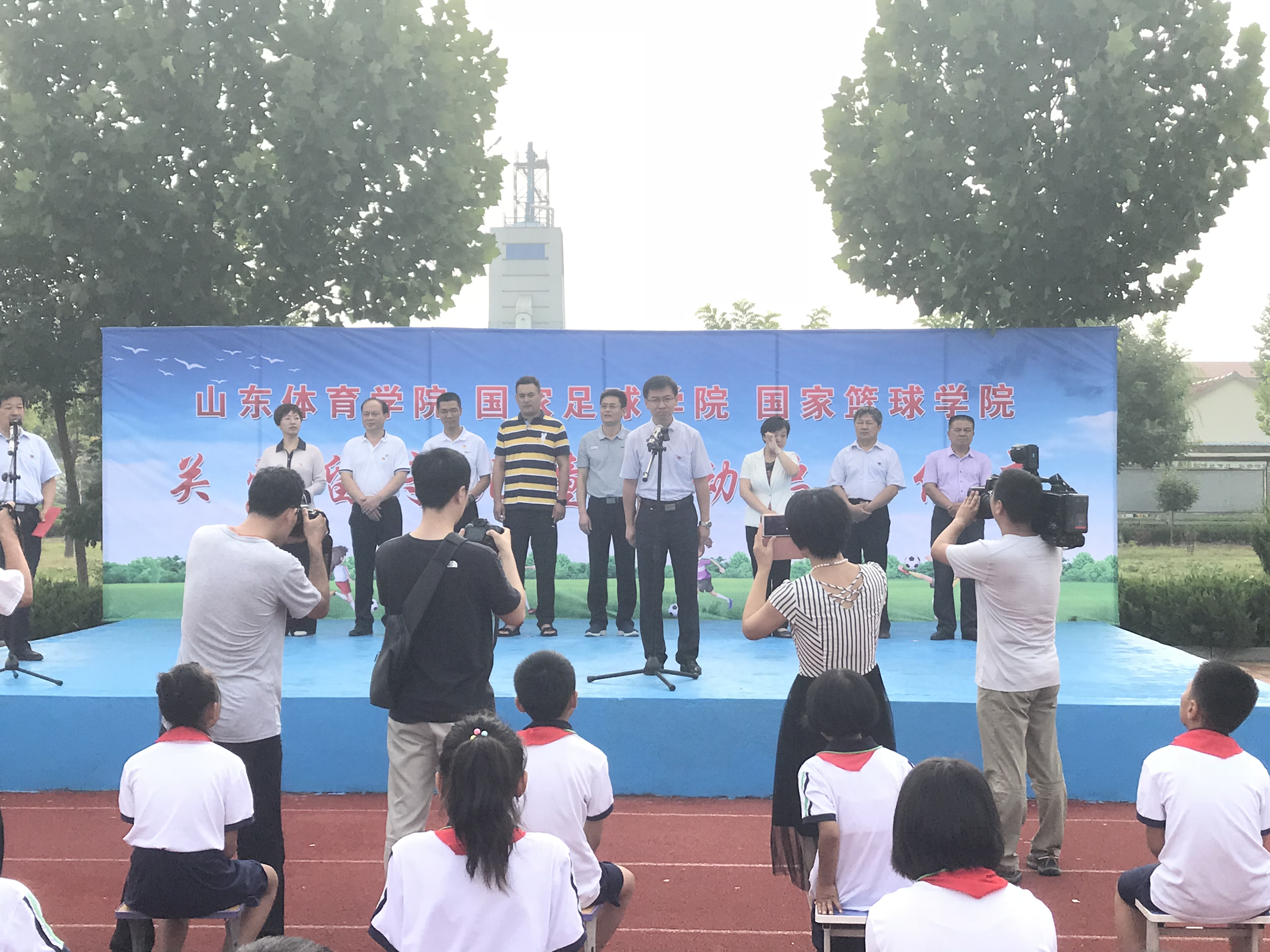 7月11日,山东体育学院国家足球学院国家篮球学院“梦与心源夏乡之源”大中专学生暑期三下乡志愿服务团志愿服务进商河暨殷巷镇“助力脱贫攻坚、关爱留守儿童”活动启动仪式在商河县殷巷镇赵奎元小学举行,国家足球学院国家篮球学院党总支副书记张凉,商河县委副书记王磊,县政府副县长崔泽花,县政协副主席孙德祥,县教育和体育局主要负责人,县政协工商联界别组代表,殷巷镇党政负责人,殷巷镇22个贫困村驻村第一书记,留守儿童等120余人参加活动。