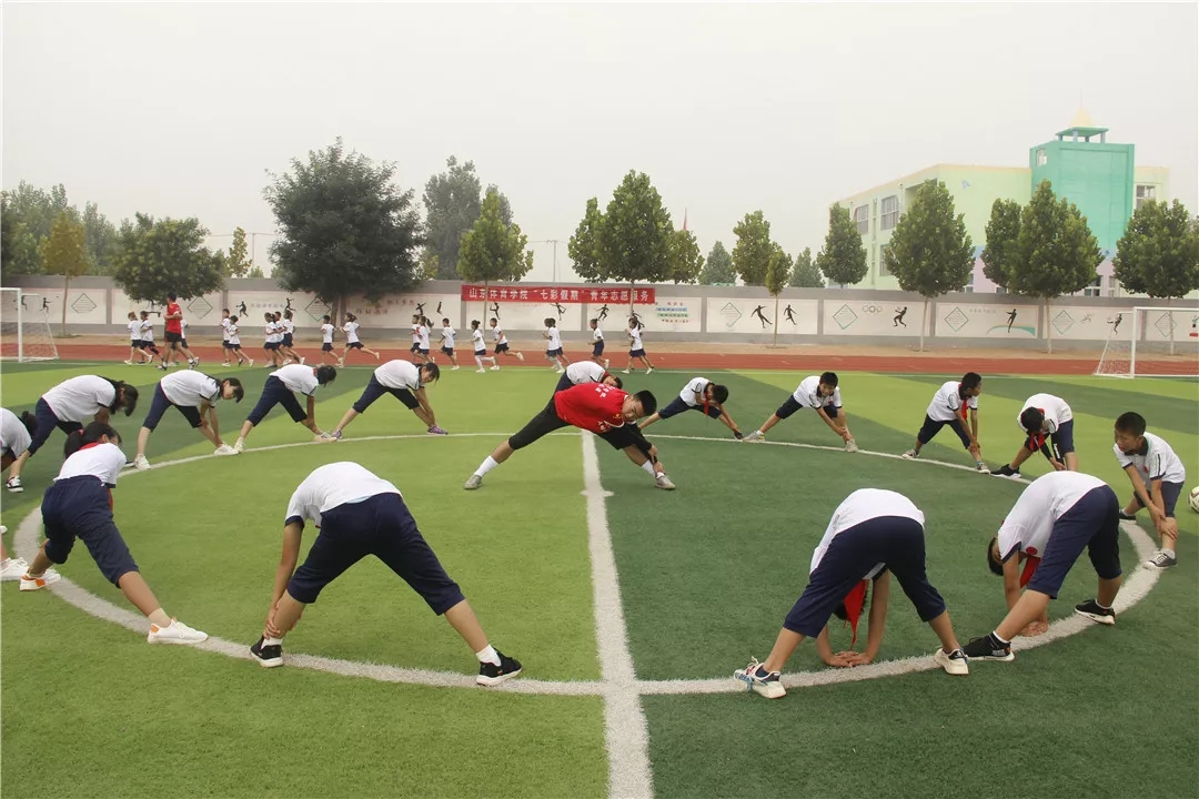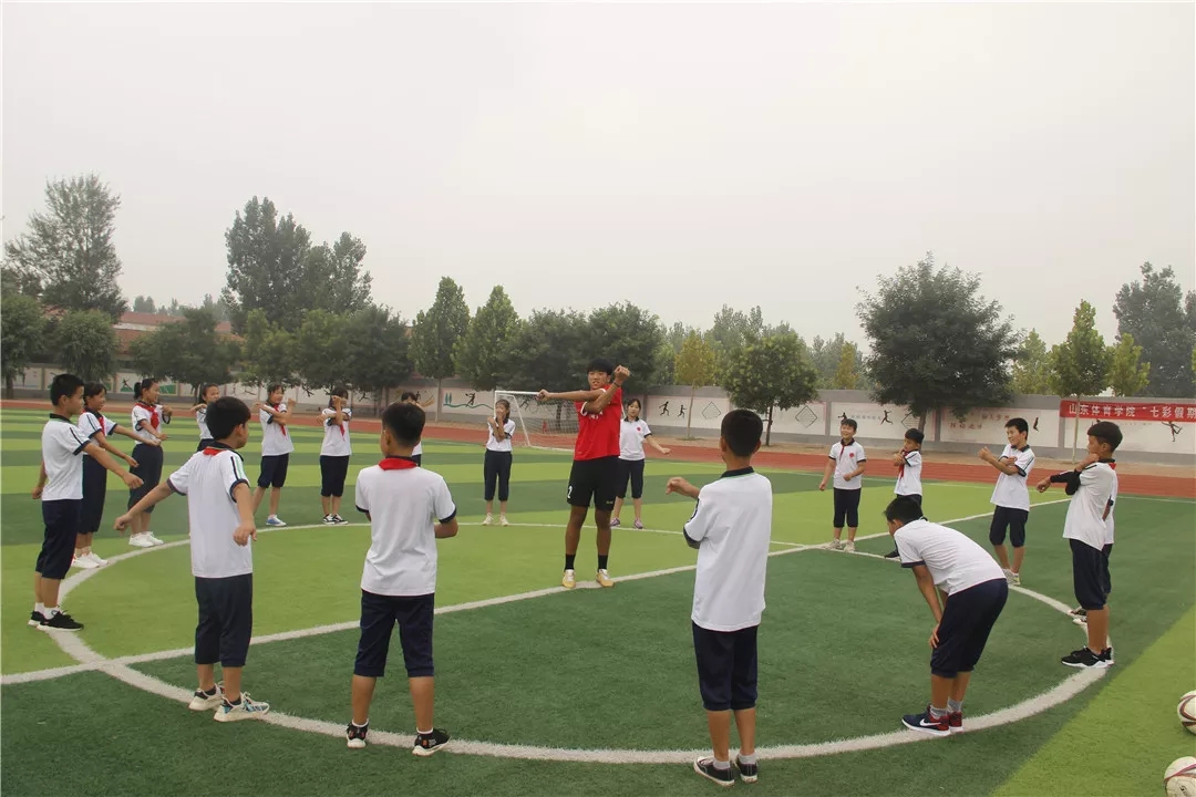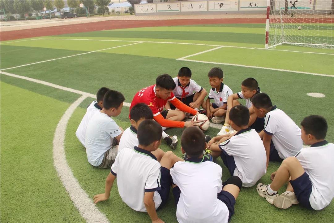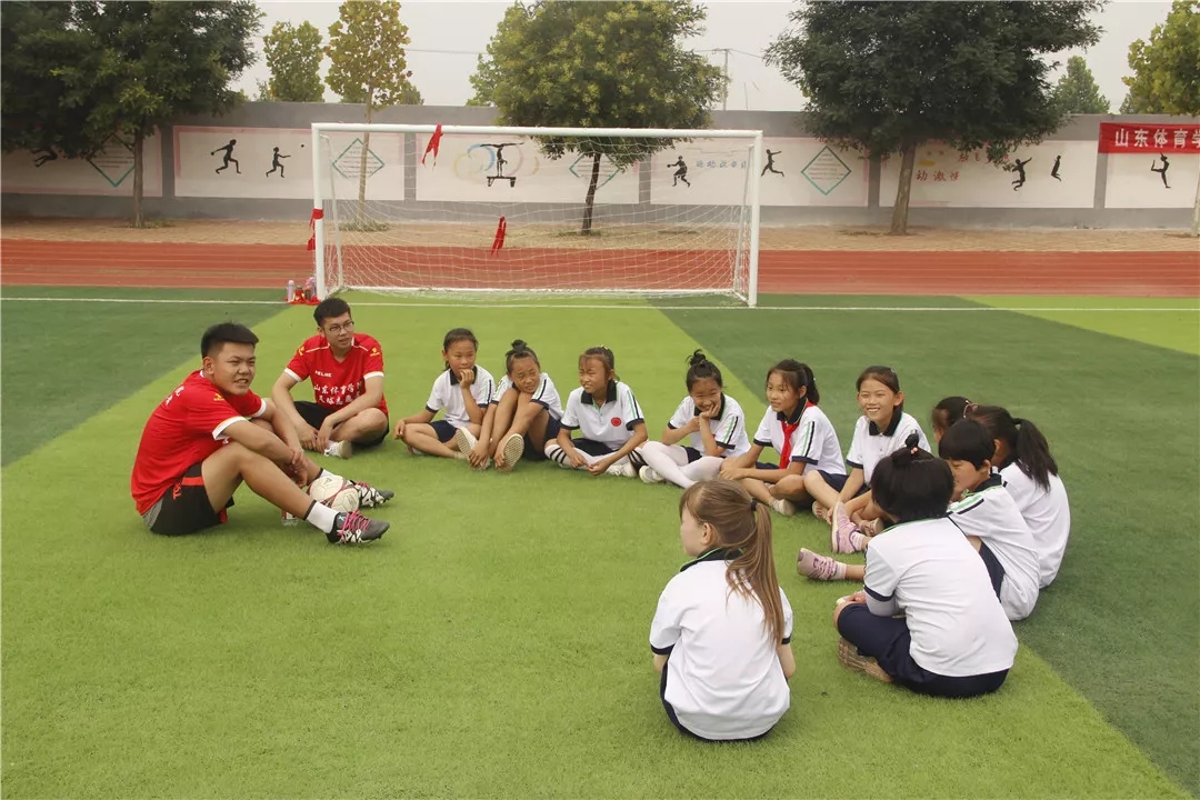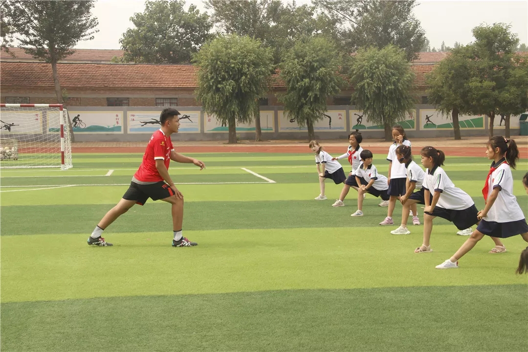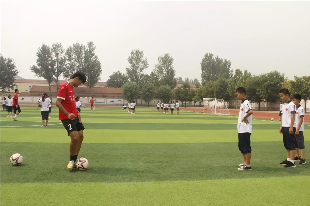 活动启动后,来自山东体育学院的8名支教志愿者,迅速融入到爱心志愿服务之中,迅速投入到支教工作,他们分工明确,利用在学校所学的足球专业知识耐心教导孩子们做游戏、热身、传球、射门等一系列活动,孩子们认真学习,操场上一片温馨。