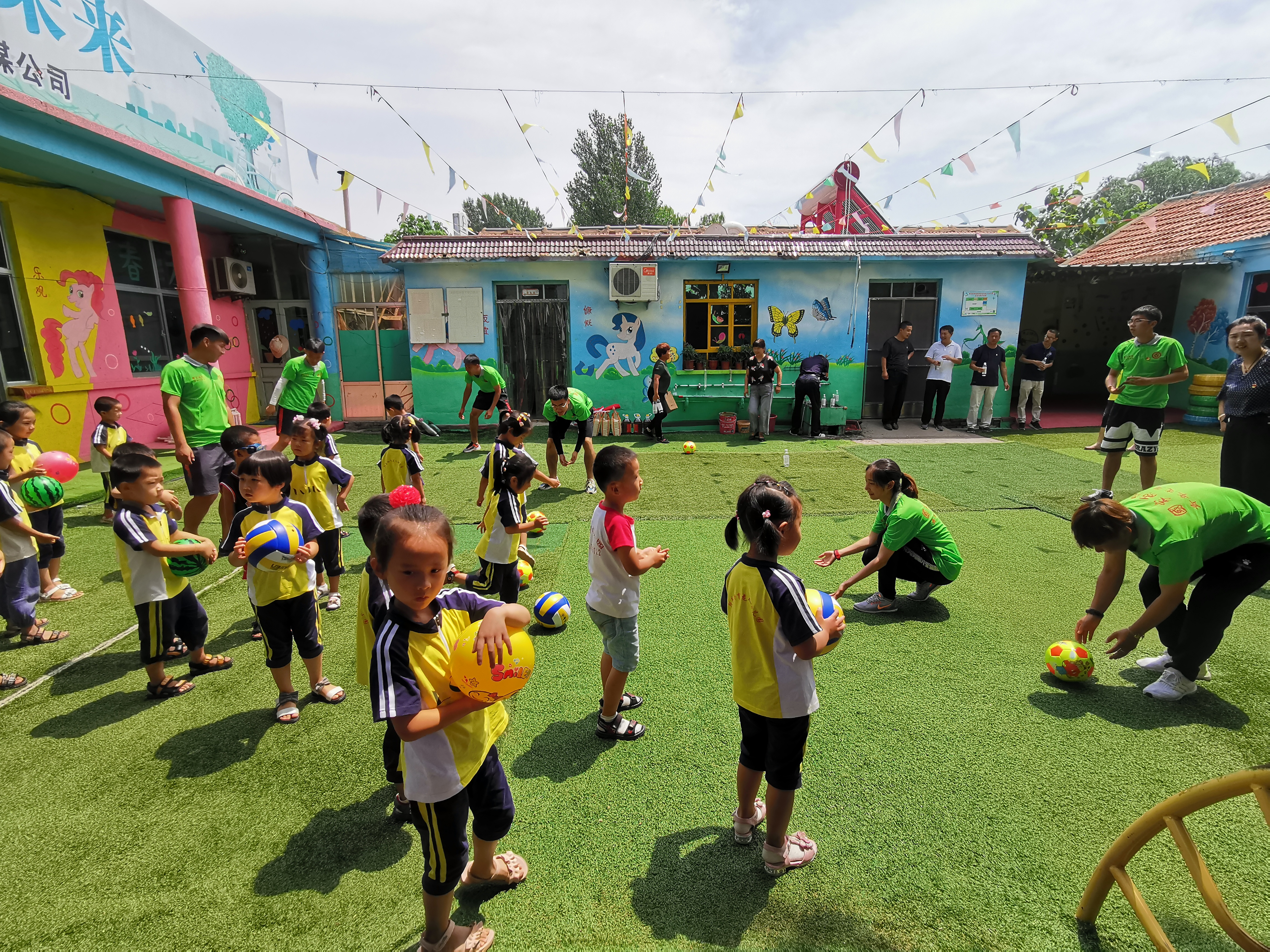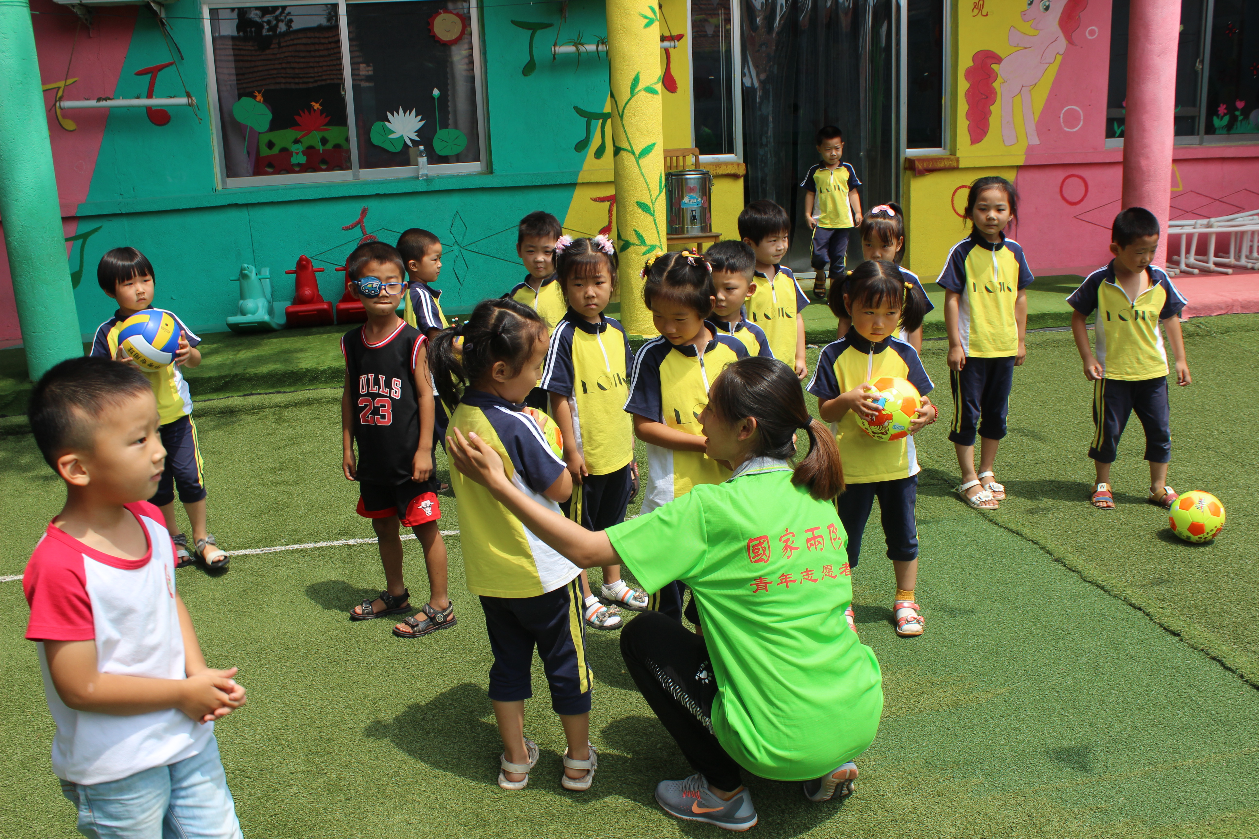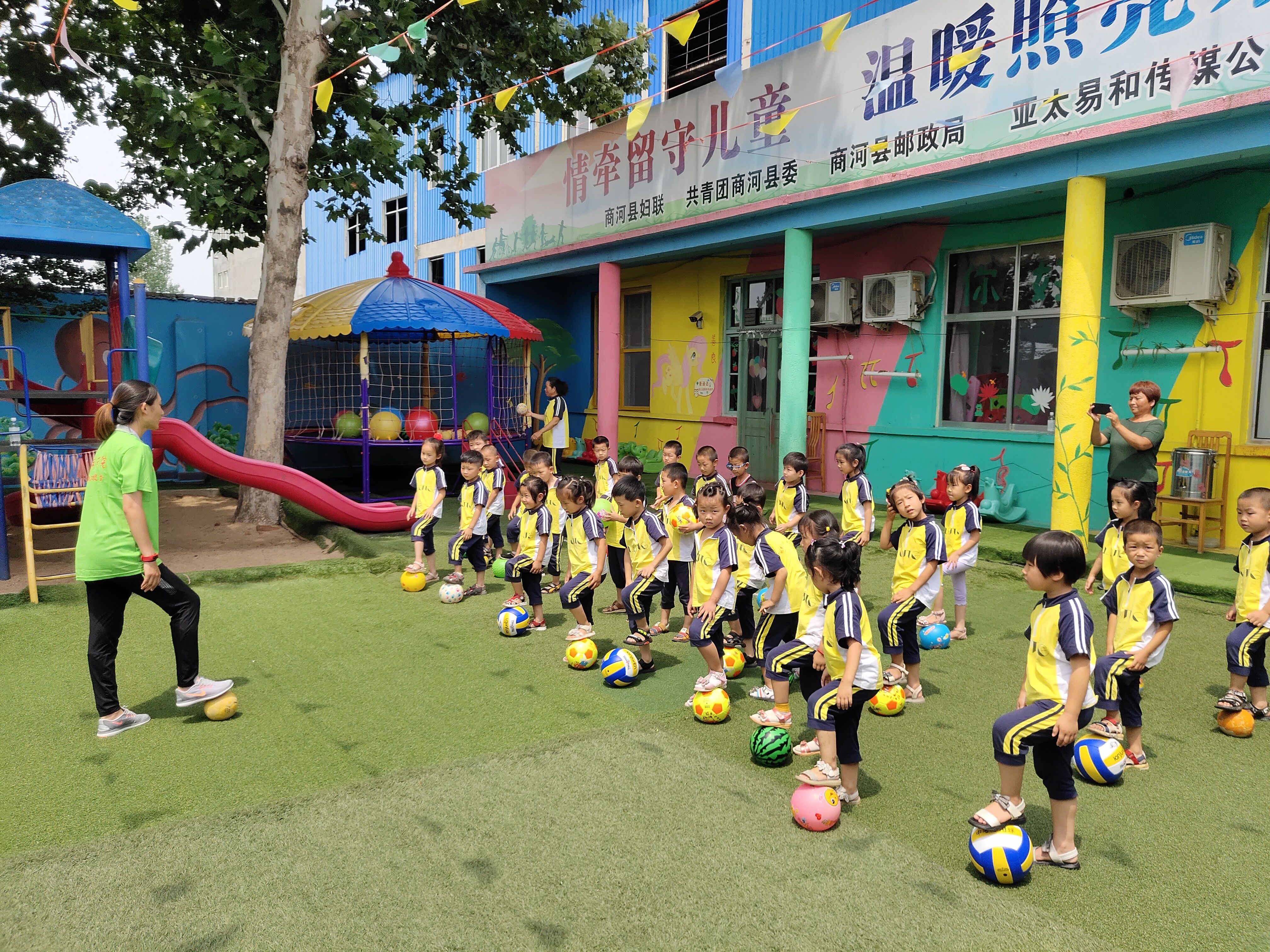 山东体育学院“梦与心源,夏乡之源”志愿服务队与殷巷镇留守流动儿童之家育龙人幼儿园。和幼儿园的小朋友进行互动,传授足球知识,并送去慰问品。