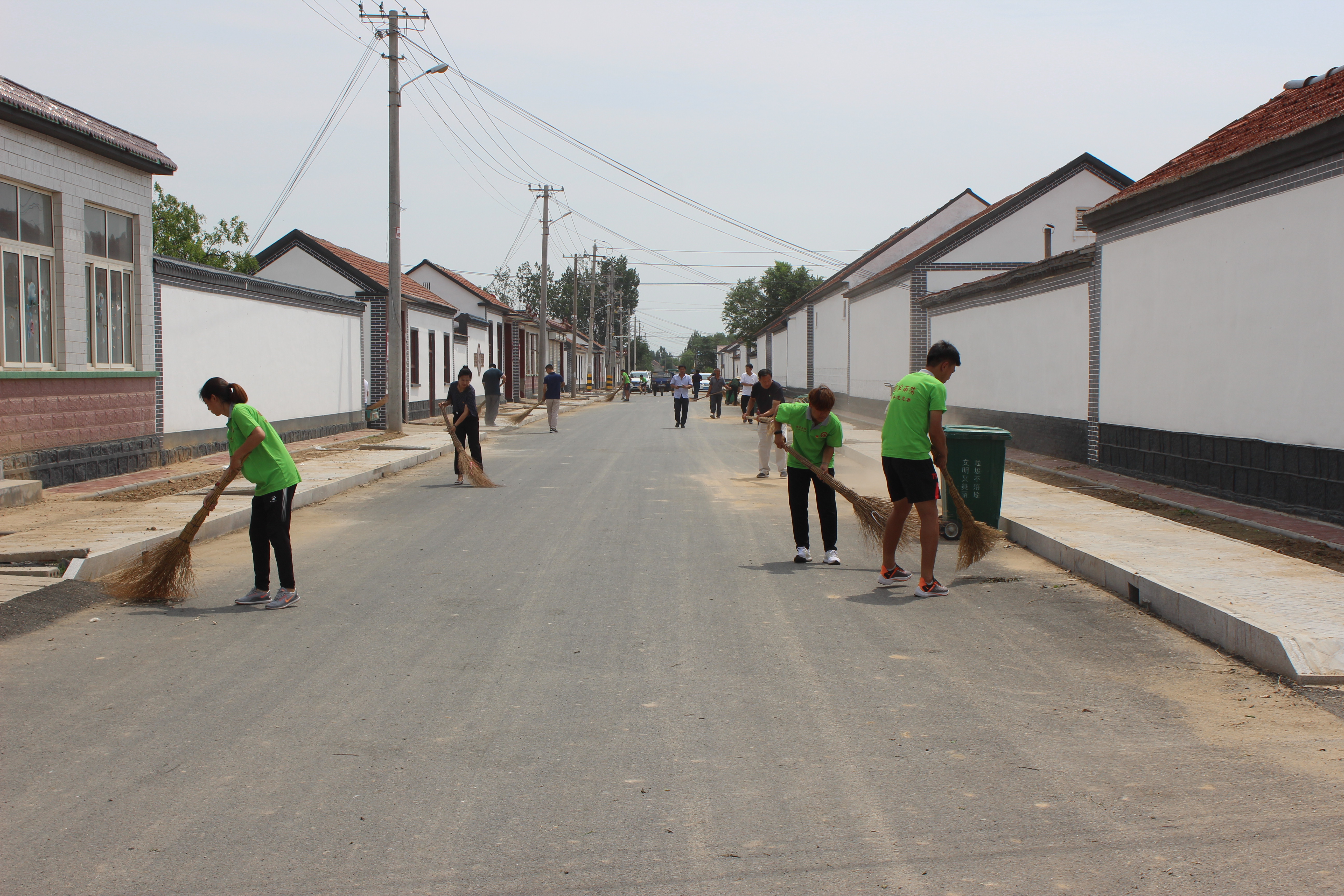 山东体育学院“梦与心源夏乡之源”志愿服务队打扫贫困村街道