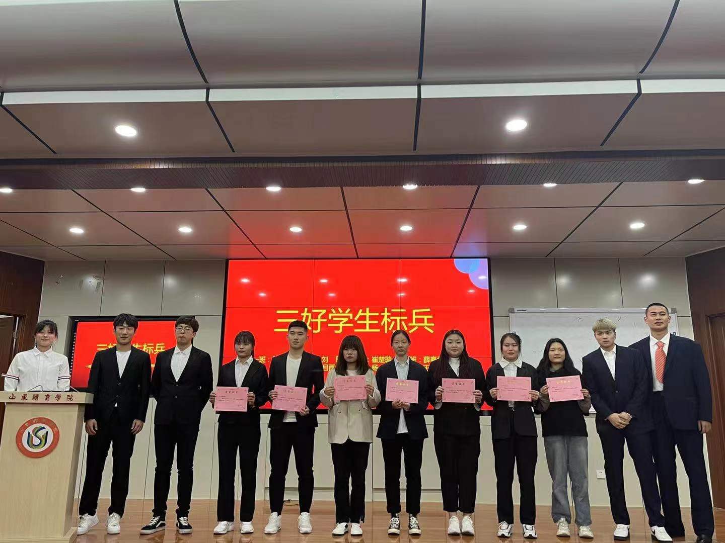 ? ?大会授予了2019-2020学年“三好学生标兵”、“三好学生”、“优秀班干部”、“优秀团干部”、“优秀团员”等荣誉称号,由各班班长进行颁奖,并合照留念。