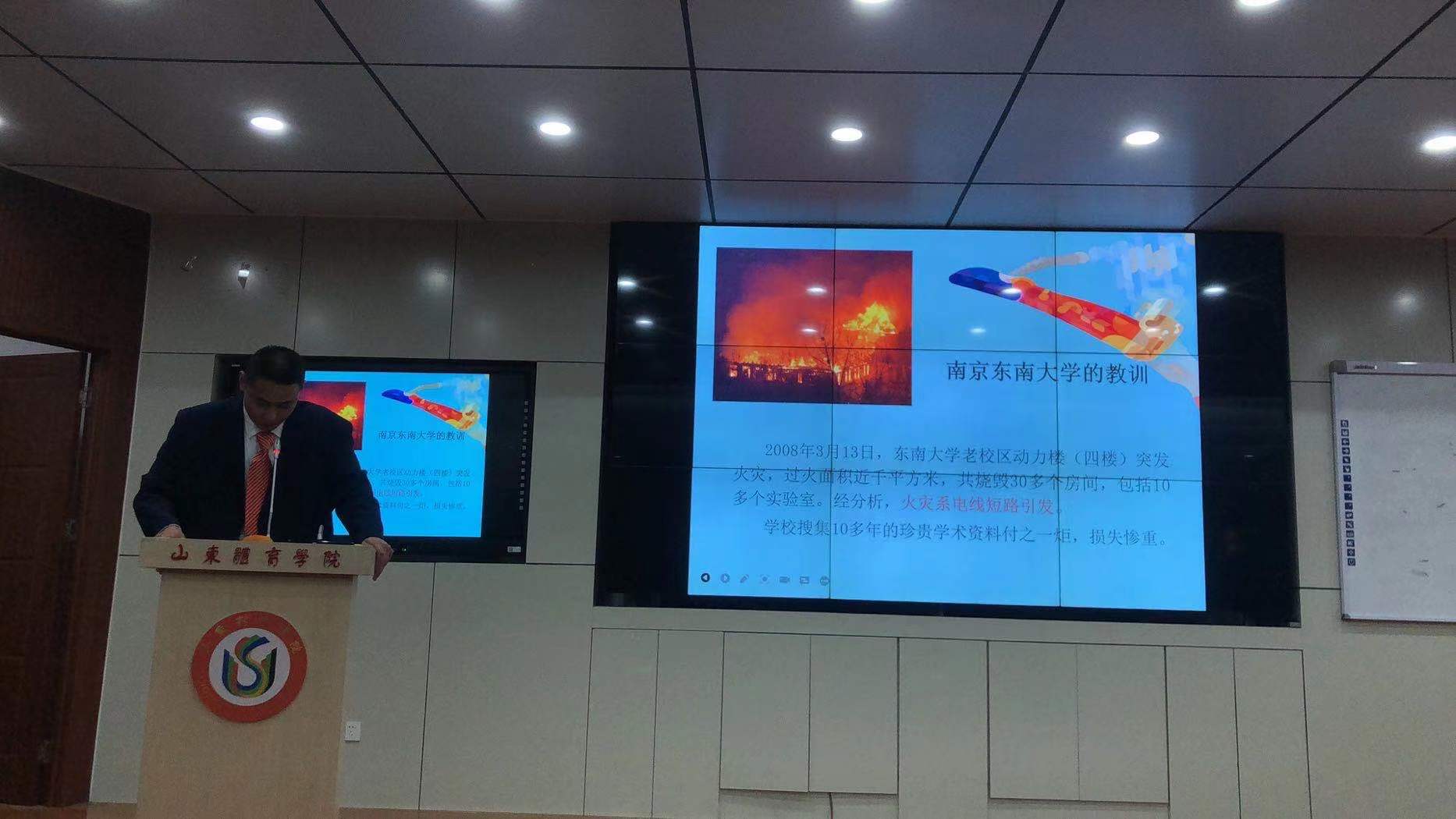 ? ?4月23日晚,为推进校园安全教育宣传工作,提高学生消防安全意识,国家两院在培训楼报告厅举办消防安全教育主题班会。班会由国家两院辅导员宋耀杰主持,2019级全体学生参加。