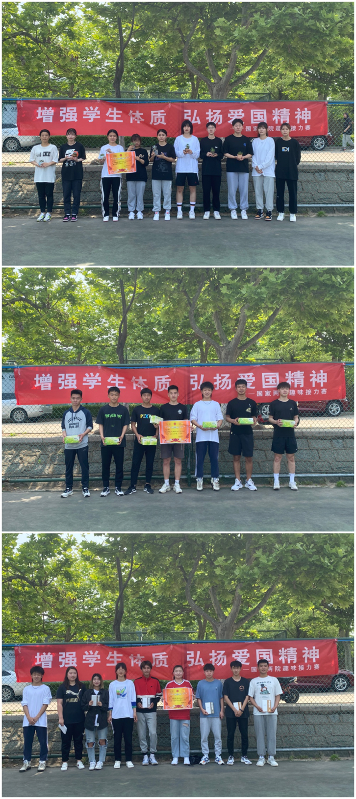 ?2021年5月22日上午,国家两院团总支在室外篮球场举办了以“增强学生体质,弘扬爱国精神”为主题的趣味接力赛。国家两院学生会全体成员参与此次活动。