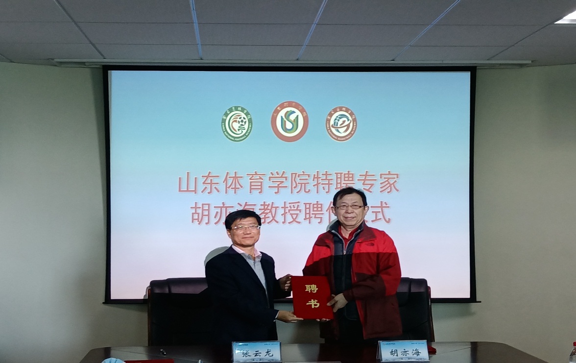 ?胡亦海接受聘书后说,山东是全国体育强省,山东运动员在国内外各项大赛中取得的成绩彰显了山东体育的光荣与成就。自己曾在2014年受聘为学校的客座教授,多年来也一直心系学校发展和建设,能够再次被聘为山东体育学院客座教授,他感到无上光荣。同时,他还表示:一是要将山东体育学院当成自己的第二故乡,和全校师生一起凝心聚力,携手前行;二是要爱岗敬业,珍惜这次宝贵的机会,发挥专长,继续拼搏;三是要遵章守纪,严格按照聘任协定和岗位要求开展工作,为山东体育学院的建设发展做出努力。
