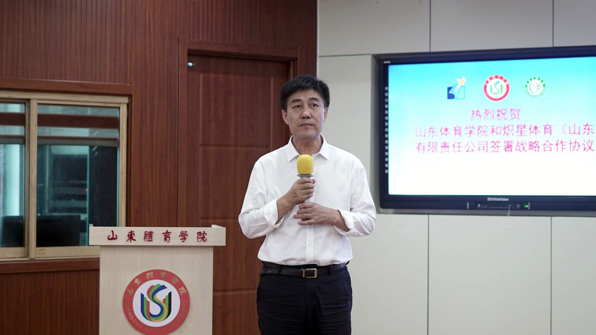 刘国强执行董事代表炽星体育致辞。他表示,炽星体育将立足于山东体育学院国家足球学院发展优势和炽星体育海外人才培养团队和全国校园足球发展需求,采取“融合创新+产业融合+资本助力”的研产投协同发展模式,与山东体育学院深入开展五方面合作:一是联合共建国际足球教育学院;二是推动国际文化交流;三是培养校园足球创新型人才;四是建设国际足球教研成果孵化中心;五是促进前沿科技研究开发与足球的有机结合。