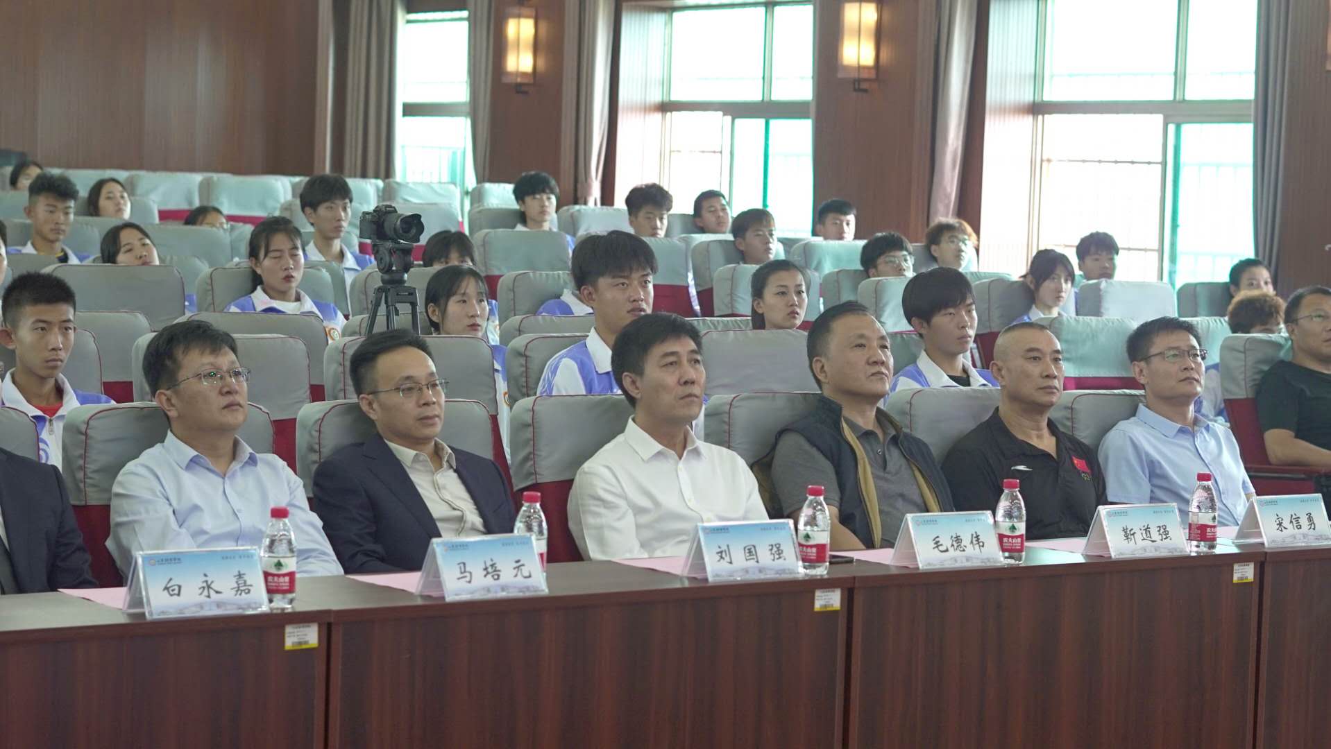 炽星体育总经理白永嘉、执行董事助理何彬、运营总监杨贺翔,国家足球学院国家篮球学院党总支书记靳道强、综合部部长兼党总支副书记张凉、国际交流与科研部部长宋信勇、相关部门领导老师及部分2020级新生参加签约仪式。