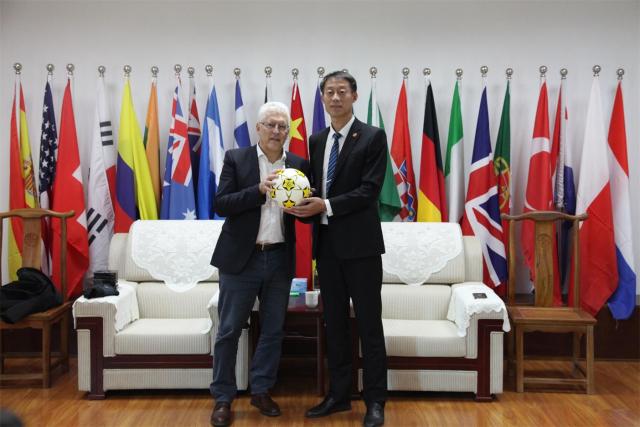 国家足球学院、国家篮球学院国际交流与科研部部长宋信勇,日照校区办公室主任杜韬,国家足球学院、国家篮球学院国际交流与科研部石磊、杨杰、焦安波,足球教研室教师孙磊,翻译宋宾等有关人员参加座谈并陪同参观。