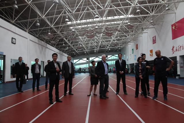 会谈期间,马克·帕里奥斯(MarkPalios)一行参观考察了山东体育学院日照校区的竞技体育与体育教育学院、武术学院、国家足球学院和国家篮球学院的整体教学环境,以及体能馆、足球场、篮球场、田径场、武术馆、摔跤柔道馆、竞技体能训练中心、大学生创业孵化基地等场馆。来宾们对山东体育学院师生富有中国特色的课堂表现大加赞赏。