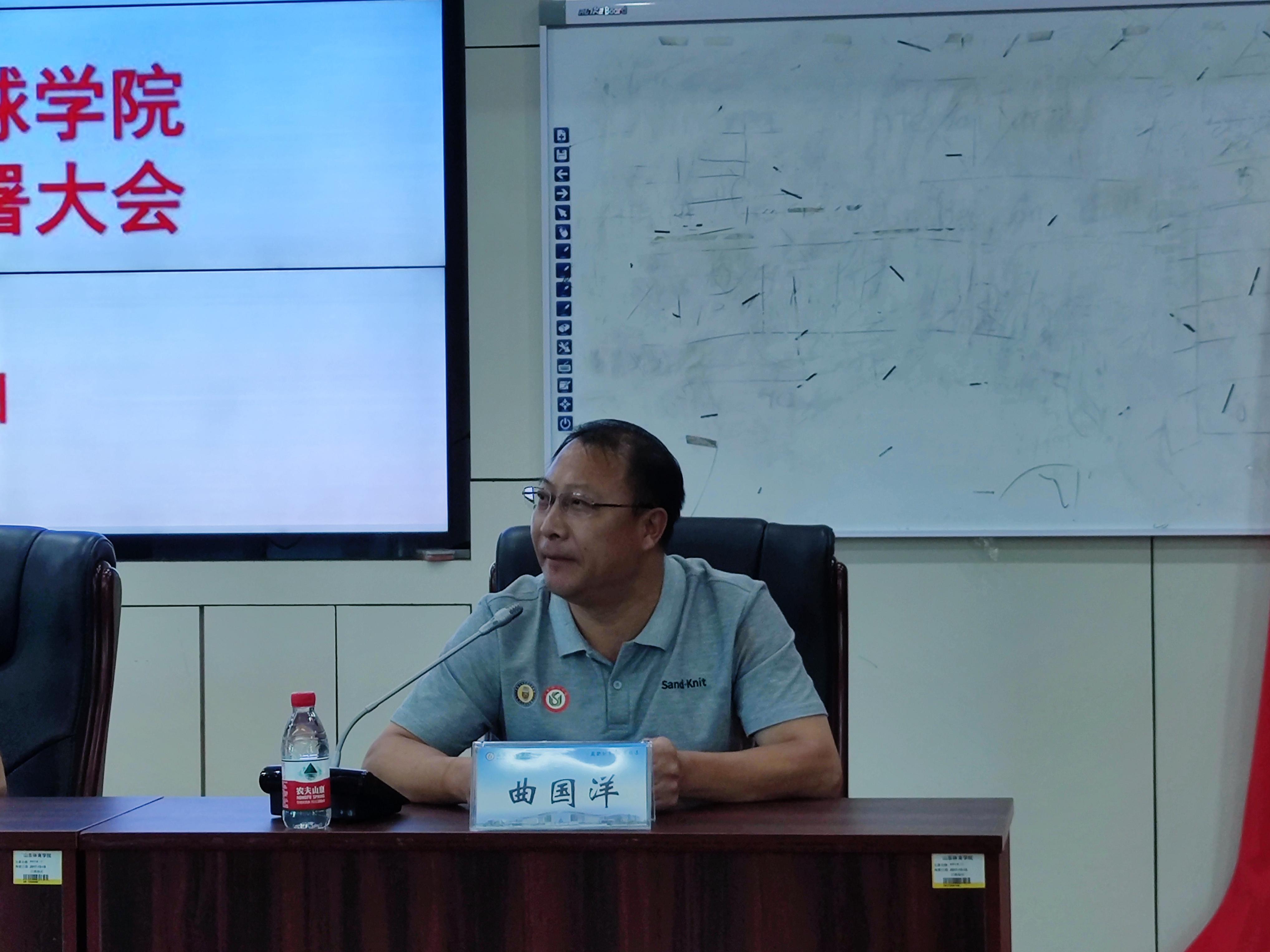 曲国洋指出面对新发展形势,学院每一位老师都有责任和义务,练就新发展本领,团结一心,努力拼搏,开创学院新发展局面。
