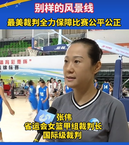 张伟,篮球国际级裁判,副教授,担任本届省运会篮球三人制比赛竞赛监督、五人制女子甲组裁判长。