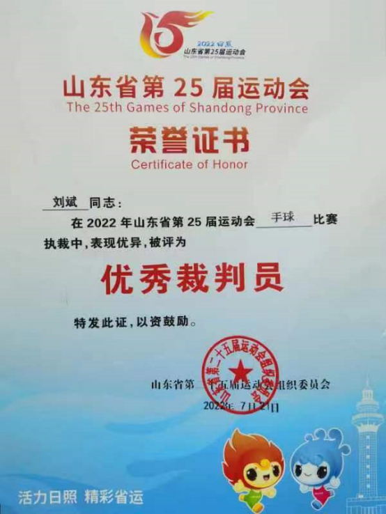 刘斌,手球国家级裁判,副教授,担任本届省运会手球比赛副裁判长,被评为“优秀裁判员”。