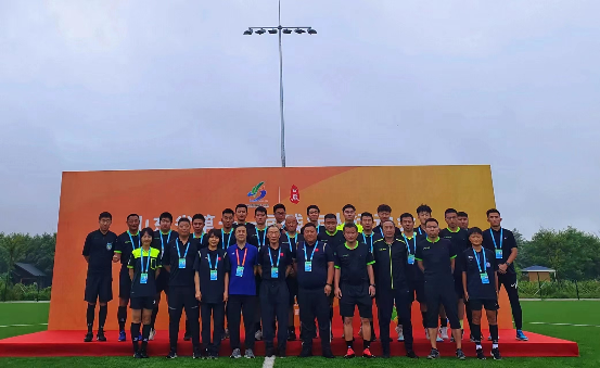 顾伟杰(下图第一排左四),足球国家级裁判,教授,担任本届省运会足球比赛女子甲组裁判长。