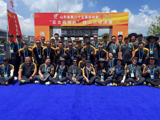 张锋(下图第四排右一),教授,担任本届省运会铁人三项比赛裁判员。
