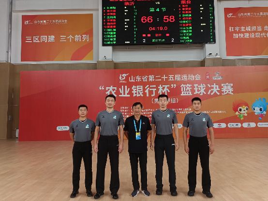 巩耀泽(下图左二),篮球国家级裁判,担任本届省运会篮球比赛裁判员。