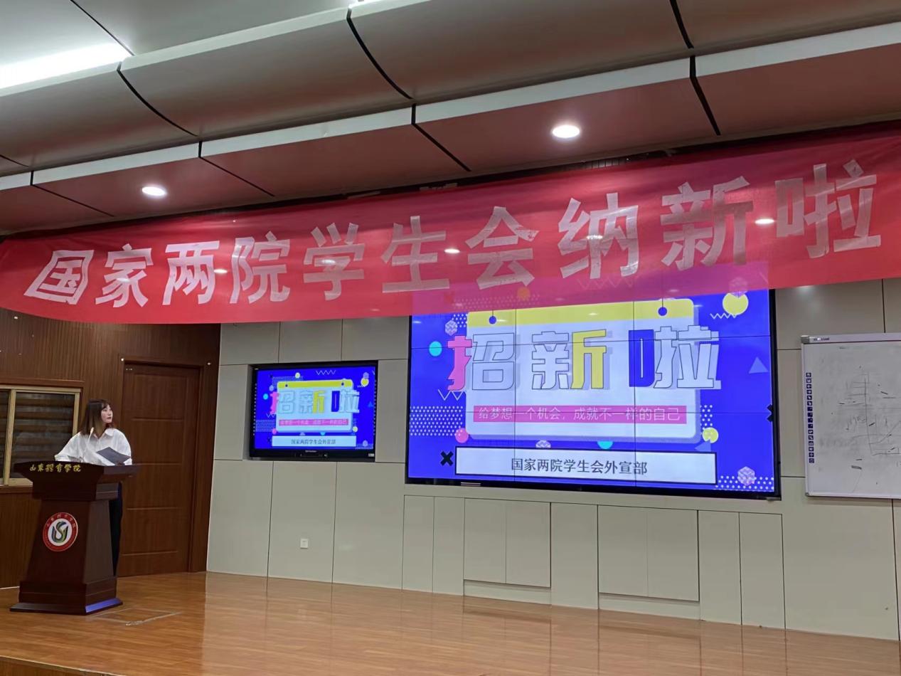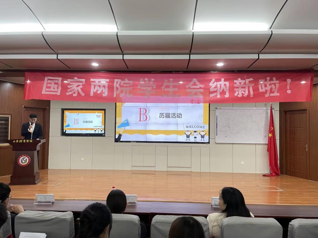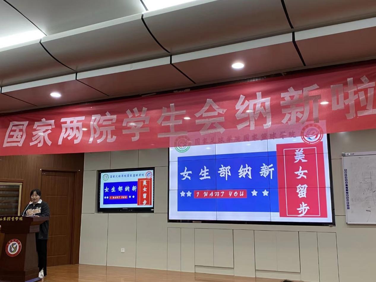 9月16日,院学生会在培训楼五楼报告厅举办2022年纳新宣传活动。国家两院团总支负责人宋耀杰、学生会主席团成员及2022级新生参加活动。