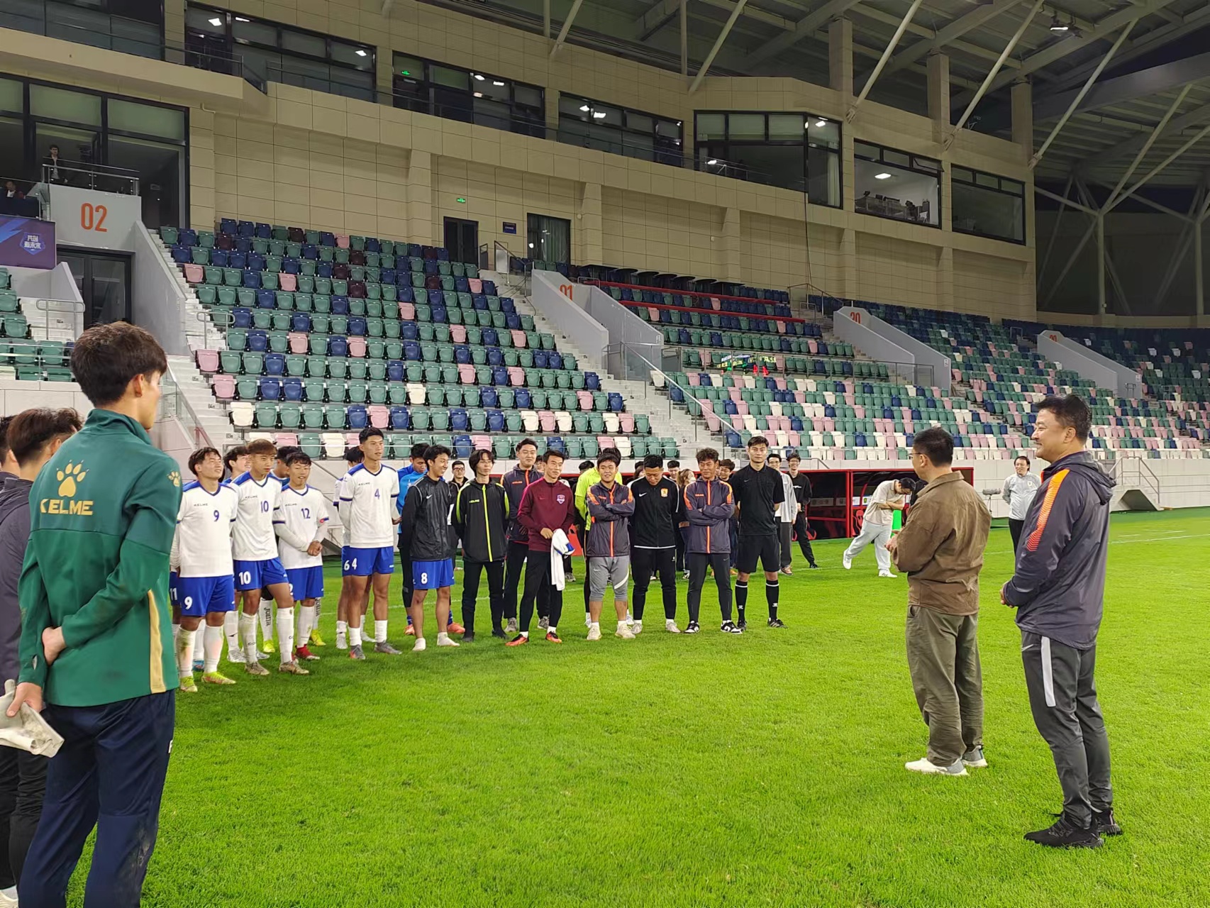 9月25日晚,国家足球学院国家篮球学院(以下简称“国家两院”)在日照国际训练中心举行院队“迎新杯”比赛。国家两院党总支书记单涛、国家两院男足院队主教练孙磊参加活动。全体男足院队队员分为龙之队和虎之队两支队伍参加比赛。