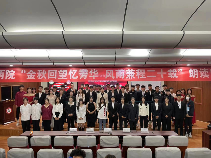 为庆祝党的二十大胜利召开和山东体育学院日照校区办学20周年,10月16日晚,国家足球学院国家篮球学院(以下简称“国家两院”)学生会在培训楼报告厅举办“金秋回望忆芳华风雨兼程二十载”朗读比赛。国家两院学生会主席团成员担任评委,学生会各部门和学生党员共组建11支队伍参赛。