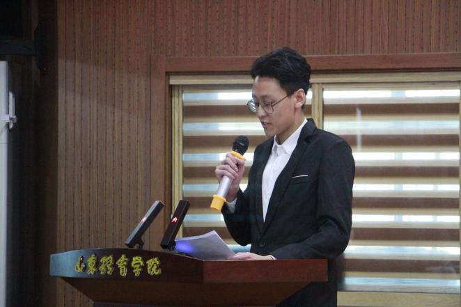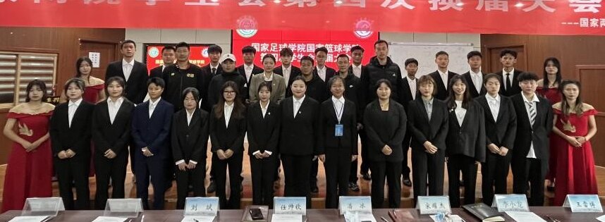 11月8日中午,国家足球学院国家篮球学院(以下简称“国家两院”)在培训楼报告厅举行第五次学生会换届大会。学院党总支副书记潘冰、学生党支部书记任帅钦、团总支副书记宋耀杰、各年级辅导员及全体学生会成员参加会议?;嵋橛裳嶂飨懦稍蓖蹙蛋僦鞒?。
