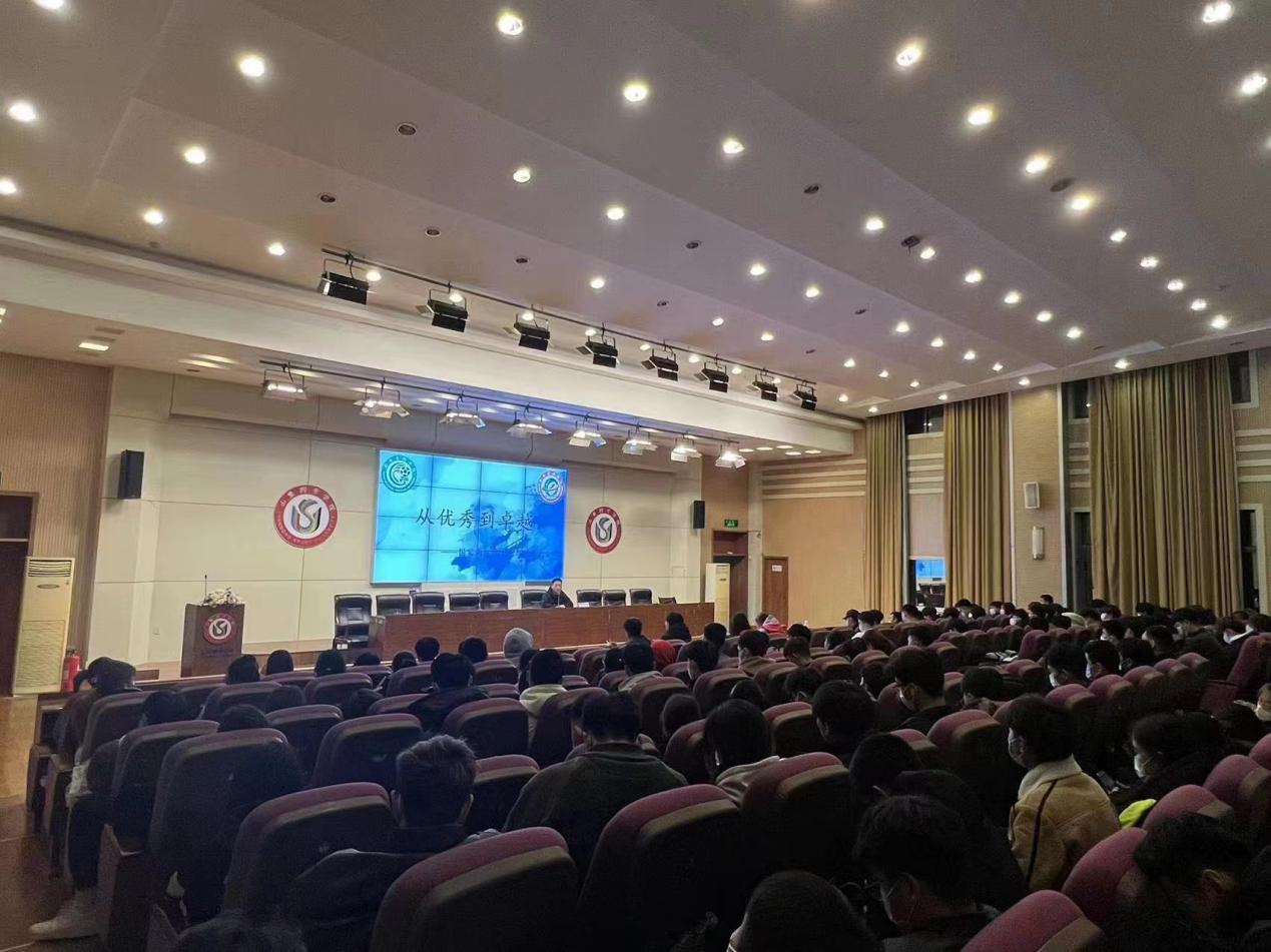 潘冰向同学们明确了学生干部的定位和优秀学生干部的标准,从优秀的个人品德、出色的学习成绩、突出的工作能力、良好的人际关系四个方面讲述了如何做一名品学兼优、德才兼备的优秀学生干部。他指出,学生干部要加强工作内容的创新,积极落实分内工作并对自身作出严格要求,保持先进思想,牢记服务宗旨,为学生做实事。最后,潘冰对学生干部提出了三点要求:一是提高政治站位,顾全大局;二是以身作则,严于律己;三是甘于奉献,服务大家。