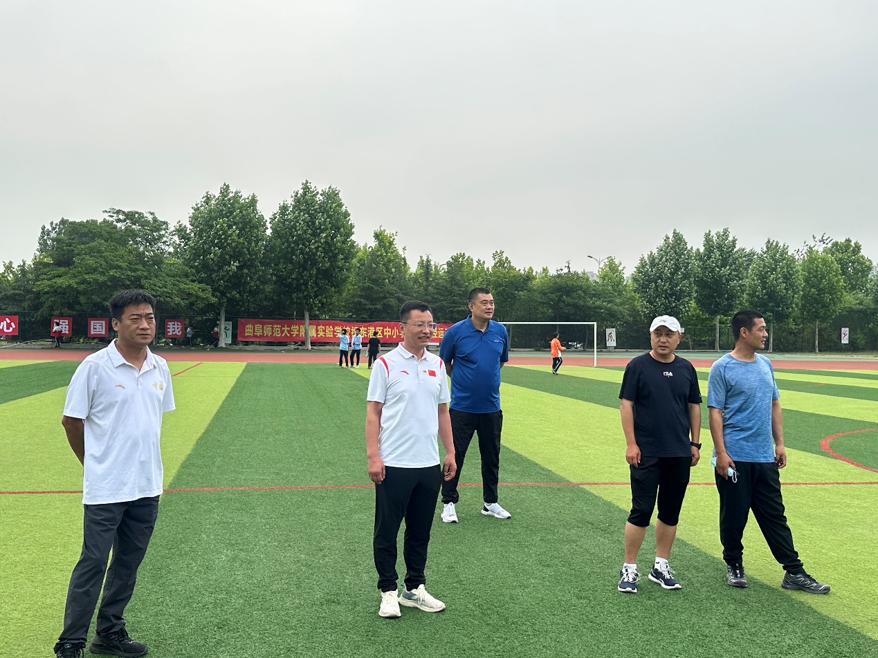 6月8日上午,国家足球学院国家篮球学院(以下简称“国家两院”)党员志愿服务队走进曲阜师范大学附属学校(以下简称“曲师附?!保┛怪驹阜窕疃9伊皆旱匙苤榧堑ヌ巍⒌匙苤Ц笔榧桥吮?、党总支宣传委员丁建军、学生支部书记任帅钦、足球支部书记栾彬、篮球支部书记尹伟,教工党员刘海泽以及6名学生党员参与本次志愿服务活动。