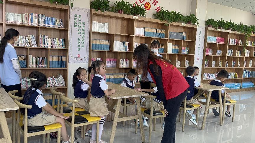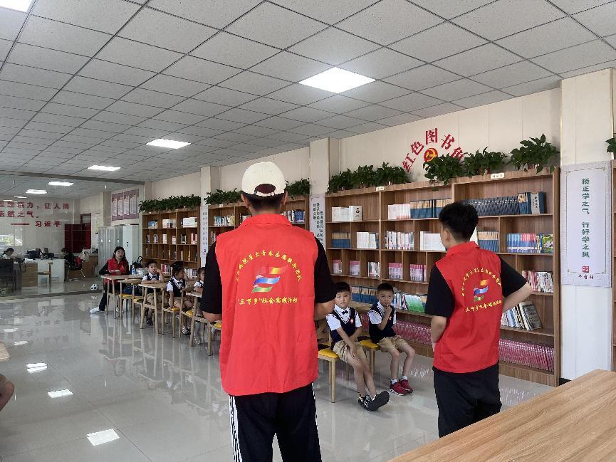 ?(图为“星火青春”志愿服务团成员郑正、杨庆华、常立昊、刘雯超开展“童心向党,党的故事我来讲”主题宣讲)