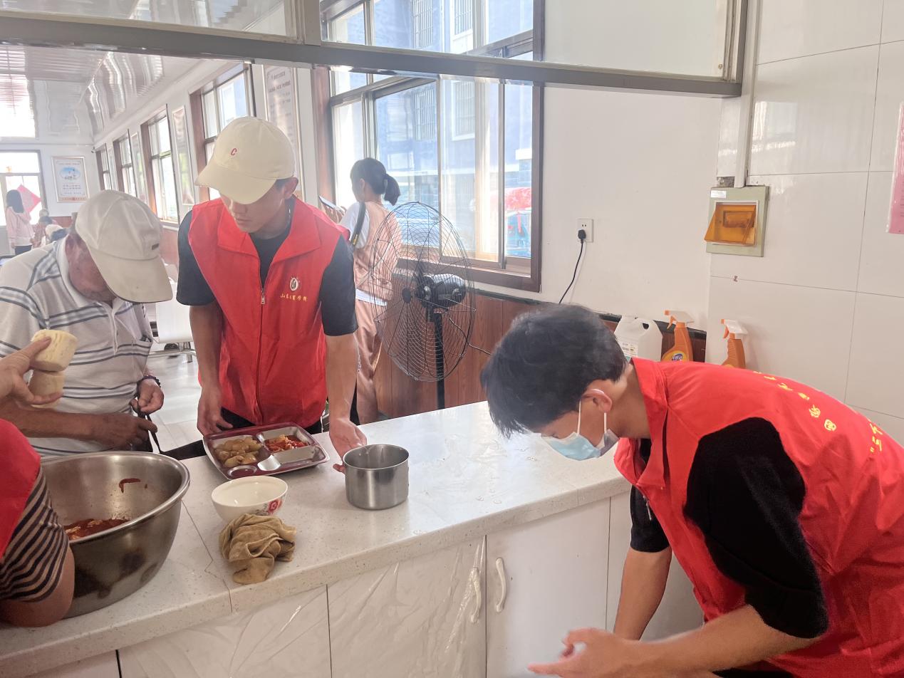 深怀爱老之情,践行为老之事。为弘扬爱老、敬老、助老的传统美德,用实际行动关爱老人,提升老人的幸福感,解决孤寡独居老人吃饭难的问题,济宁曲阜市防山镇积极开展“幸福食堂”建设,兴办了“幸福食堂”,让孤宴老人每天都吃上新鲜热乎的饭菜,晚年幸福更有保障。7月22、23日,志愿服务团前往齐王坡村社区“幸福食堂”开展“爱住夕阳关爱老人”志愿服务活动。
