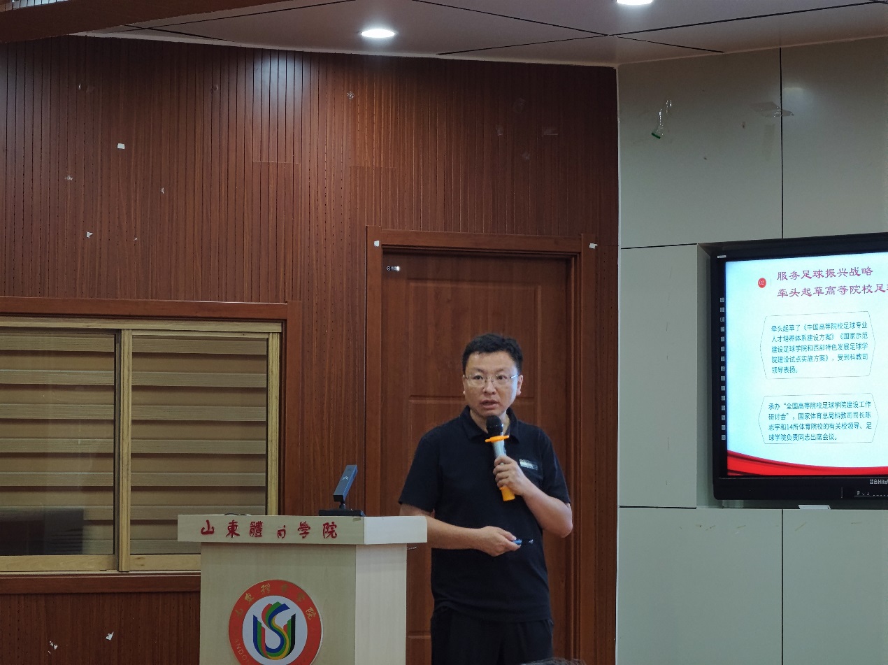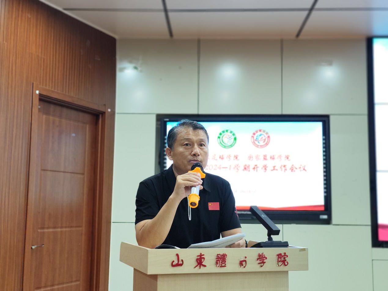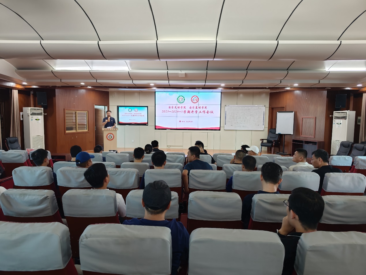 单涛全面总结了上学期和暑假在主题教育、专业建设、教育教学、平台搭建、科学研究、竞赛训练、学生管理等方面成果,安排部署了本学期重点工作。一是加强学习,搞好团结,共同进步,以党建为引领,建设更优更强国家两院;二是积极谋划,优化管理,引育人才,扎实推进足球学院、篮球学院实体化建设;三是高度重视,认真训练,永争第一,提高赛事管理和竞赛水平;四是确保底线,优化设计,打造品牌,持续提升学生管理水平;五是争取资源,做强项目,做实工作,不断提高学院科技助力和社会服务能力。