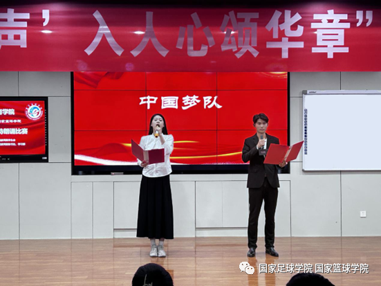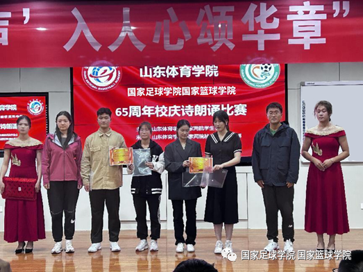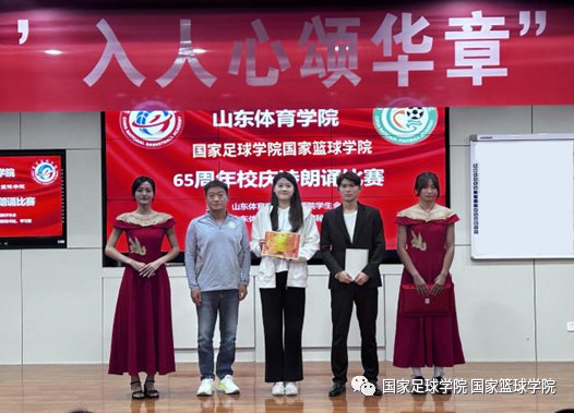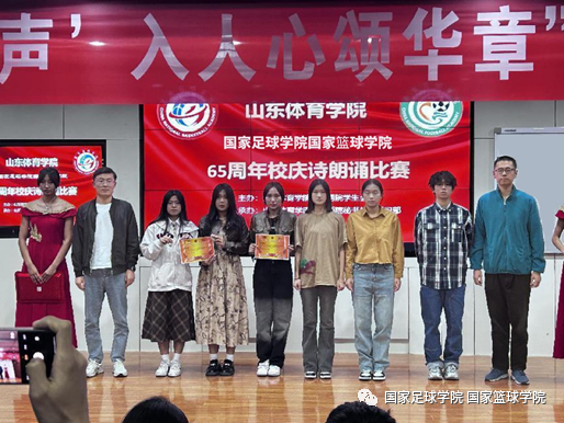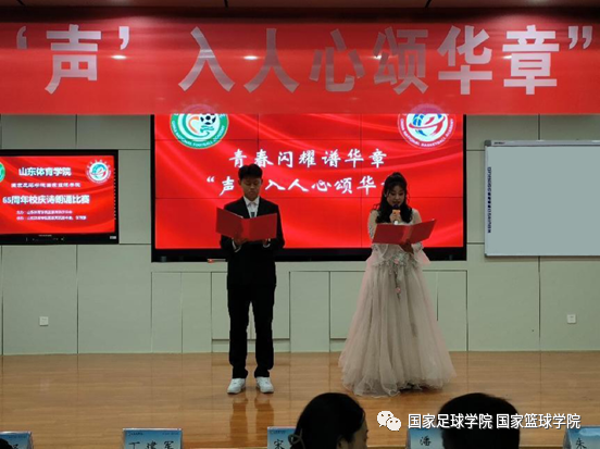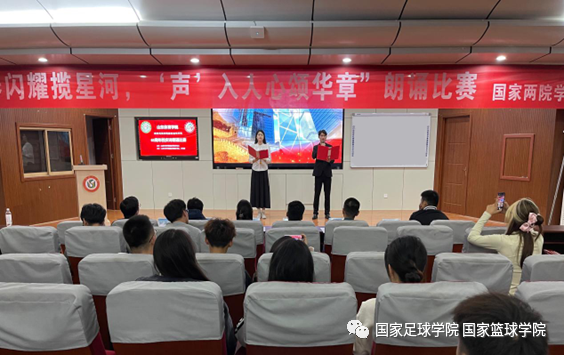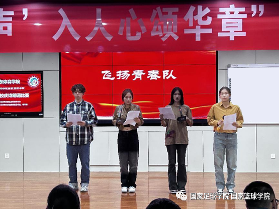 为庆祝山东体育学院建校65周年,10月26日,国家足球学院国家篮球学院(以下简称“国家两院”)学生会在培训楼五楼报告厅举办“青春闪耀揽星河,‘声’入人心颂华章”诗朗诵比赛决赛。国家两院党总支副书记潘冰、正科级教学秘书丁建军、团总支副书记宋耀杰、篮球教研室副主任刘斌及学生辅导员朱鹏、刘海泽出席活动并担任评委。经过初选,共7支队伍脱颖而出,入围决赛。