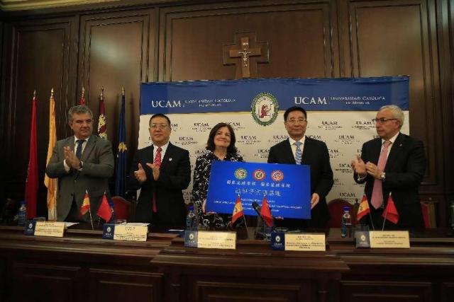 融合高端资源,提升国际交流层次,5月8日,山东体育学院党委书记、国家足球学院国家篮球学院院长王毅率团访问西班牙武康大学,双方签订合作协议,共建“山东体育学院国家足球学院·国家篮球学院西班牙实训基地”。山东省委常委、宣传部部长兼省委教育工委书记白玉刚,西班牙奥林匹克委员会主席阿莱汉德鲁·布兰科,穆尔西亚自治区副主席胡安·玛利亚·巴斯出席揭牌签约仪式,为基地揭牌。