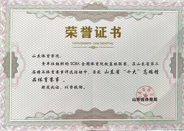 SCBA荣获山东省“十大”高端精品体育赛事
