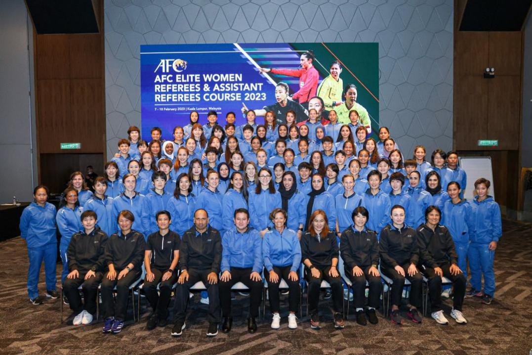 张玲玲(前排右三)担任2023年亚足联精英女子裁判员培训班讲师