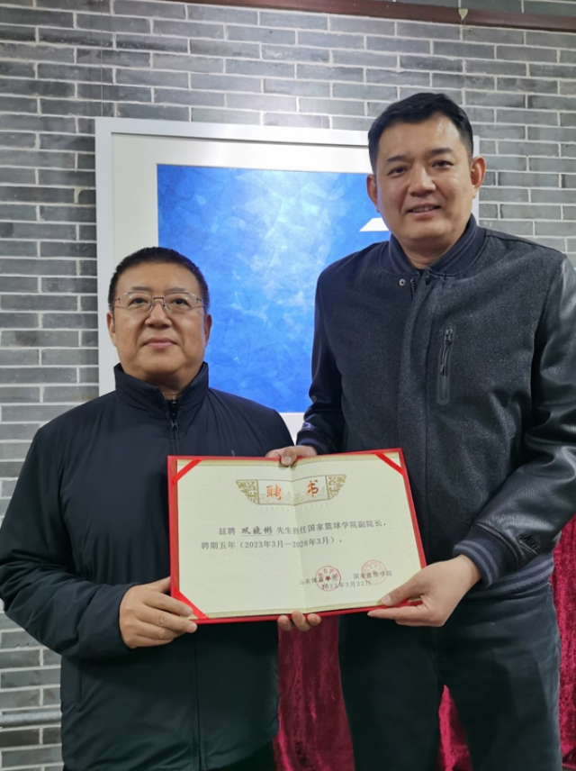 3月23日,山东体育学院党委书记、国家篮球学院院长王毅向著名篮球运动员、教练员、山东省篮球运动协会会长巩晓彬颁发聘书,聘其担任国家篮球学院副院长。巩晓彬表示将积极投入到国家篮球学院的建设和发展工作中,努力为培养高素质篮球专业人才贡献力量。此次聘请巩晓彬担任国家篮球学院副院长,是学院进持续引才引智的一项重要举措,将在进一步提升办学水平、人才培养质量和社会声誉方面起到积极的作用。