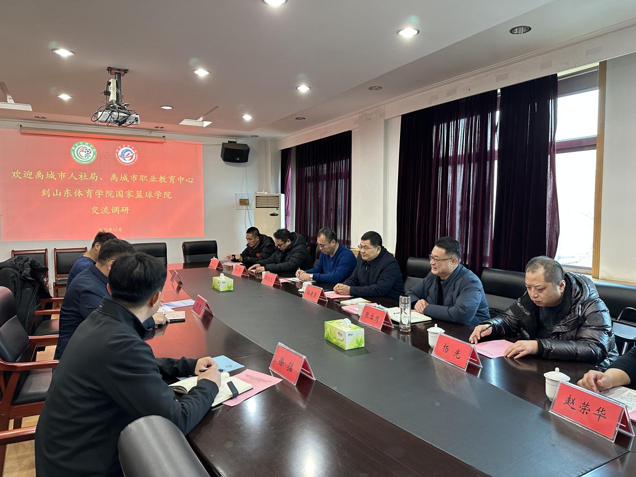 12月28日,禹城市委组织部副部长、禹城市人社局党组书记、局长孙建勇,禹城市人社局党组成员、公共就业和人才服务中心副主任张立国,禹城市职业教育中心学校党委委员、副校长韩吉亮等一行七人来学院商洽实践教学基地建设事宜。国家足球学院国家篮球学院党总支书记单涛主持会议,副书记潘冰、业务部副主任徐猛参加座谈交流。